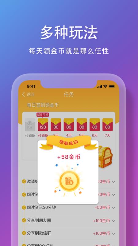 1、邀请好友赚金币,而金币可以兑换成金钱;