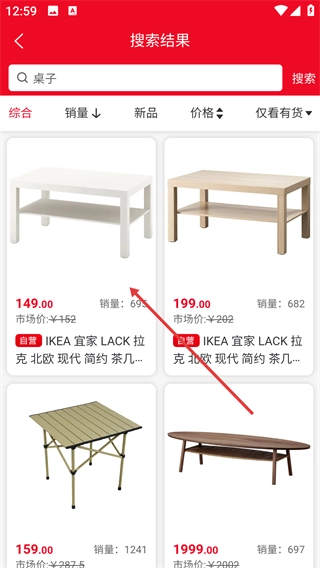 3、在搜索结果页面,能够查看像【IKEA-宜家-LACK-拉克-北欧-现代-简约-茶几】这类相关商品的列表信息。