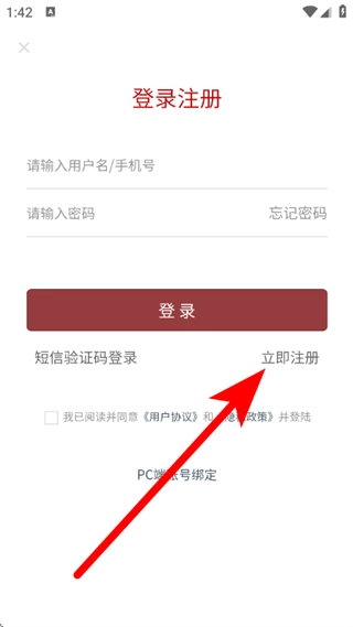 3、在登录注册页面,点击立即注册,进入注册页面。