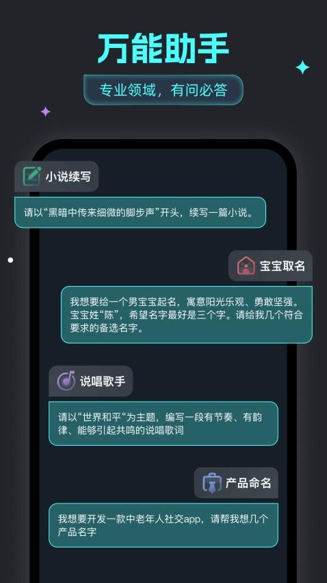 无论是翻译沟通的困惑、亟待攻克的难题、宇宙深处的奥秘、历史长河中的未解之谜,还是学习工作的瓶颈、美食制作的技巧、健康生活的智慧,只要是不同领域的疑问,他都能为你提供答案。