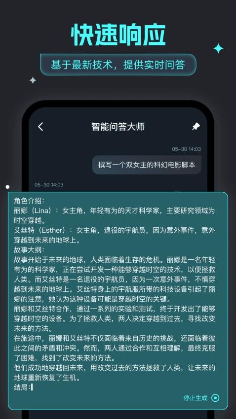 智能问答大师能够即时响应用户的问题或消息,省去了等待人工客服反馈的时间,带来即时的交流体验。作为一款响应速度极快的产品,用户在这款软件里可以享受到丰富的AI功能服务。有需求的朋友们,快来下载使用这款软件吧。