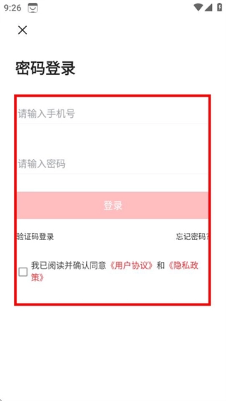 4、进入密码登录页面后,先输入相关信息并勾选协议,接着点击登录按钮,就能完成登录操作。