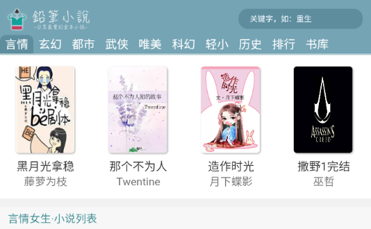 1. 小说类别:涵盖言情、武侠、历史、科幻、都市、玄幻、推理等多种类型的小说。