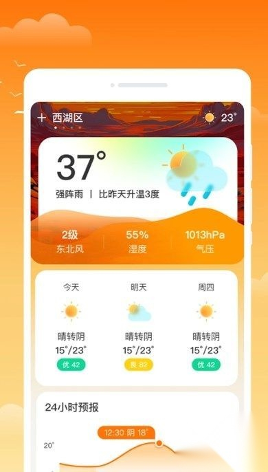 3我们提供实时更新的天气趋势动态展示,让用户能够提前了解未来24小时内天气的变化情况。