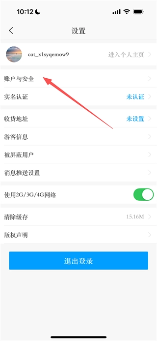 3、进入设置页面后,找到并点击“账户与安全”选项,即可进入对应的账户与安全页面。