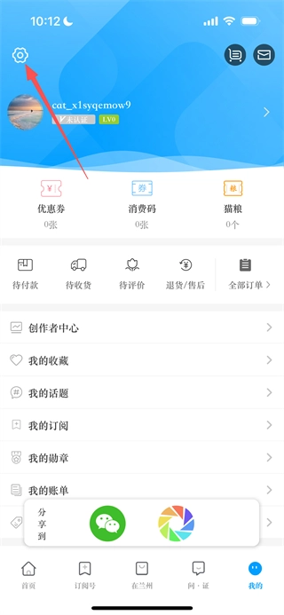 2、进入个人中心页面后,点击左上角的设置图标,即可进入设置页面。