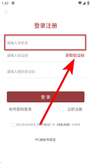 4、填写验证码与图形验证码,勾选相关选项后,点击登录按钮,即可完成登录操作。