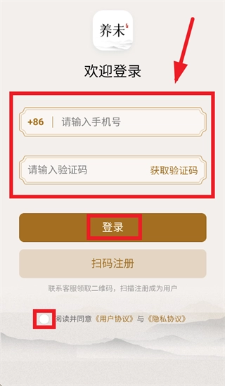 进入登录页面后,填写手机号码和验证码,勾选已阅读并同意《用户协议》及《隐私协议》,最后点击登录按钮就可以了。