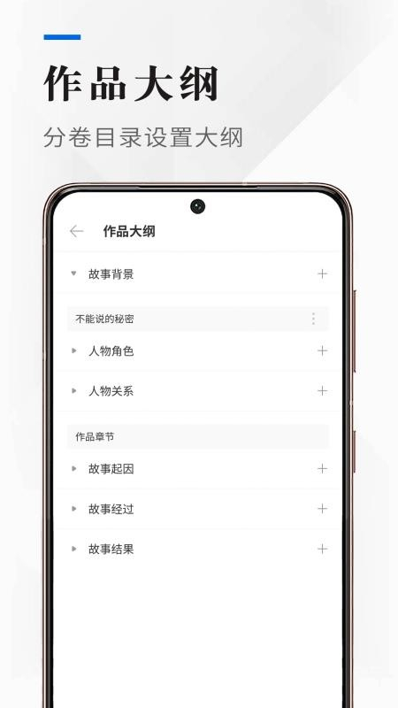 2. 大纲设计:用户可以通过可视化故事提纲设计(故事树)功能,直观规划故事脉络,提升写作效率。
