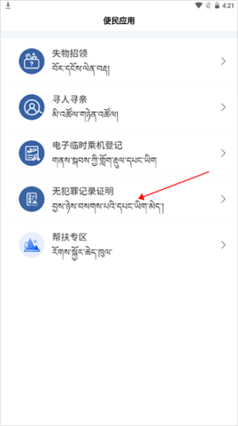 2、在便民应用页面里,找到【无犯罪记录证明】选项,接着依照页面提示的流程操作,就能顺利完成办理,整个过程十分顺畅。