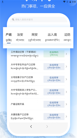 西藏公安政务服务这款手机应用,对西藏自治区的居民来说,就像多了一只得力的手。试想一下,在这片美丽又神秘的高原上,不管是出租房屋登记、流动人口登记,还是交通服务等各类事务,都能通过手机便捷办理,省去了许多奔波和麻烦。特别值得一提的是,这款应用不仅支持汉语,还专门加入了藏语功能,切实满足了每一位用户的使用需求。