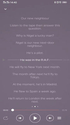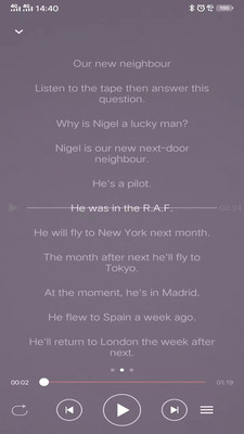 1英语相关的听力内容、书面材料、互译结果、文字信息、广播音频以及对应的文本内容能够实现实时匹配展示。