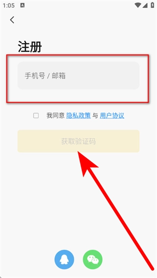 3、进入注册页面后,填写手机号与邮箱信息,勾选相关选项,再点击“获取验证码”按钮。