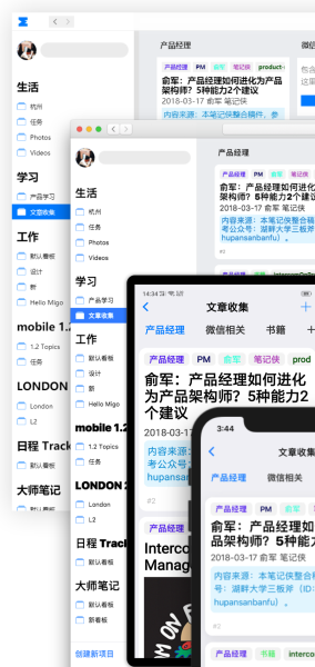 然后,搭配使用大师笔记的macOS应用、Windows应用与iPhone应用,您就能不受时间地点限制地记录和管理自己的笔记。