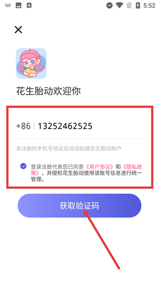 3、进入个人页面的登录界面后,填写【手机号】并勾选相关协议,接着点击【获取验证码】按钮,以此启动账号的验证流程。