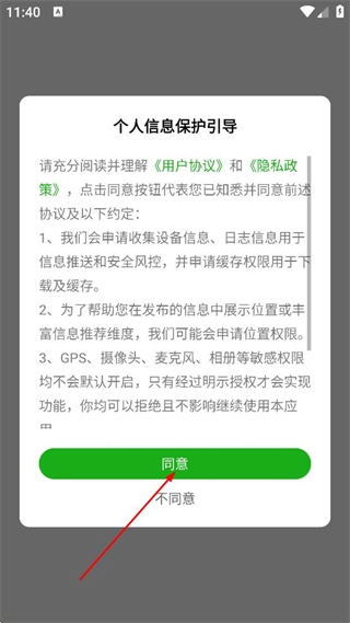 在个人信息保护引导弹窗里点击同意,即可进入首页。