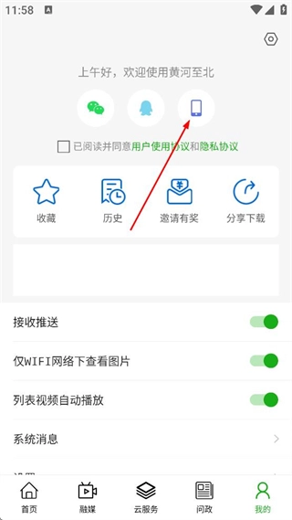 3、进入个人中心页面后,找到并点击手机图标,即可跳转至手机号登录界面。