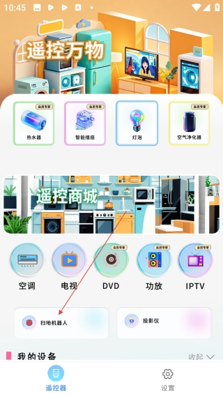 1、在遥控首页,点击【扫地机器人】选项,进入品牌选择的操作界面。