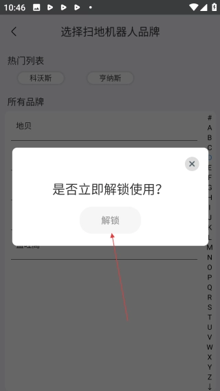 2、在品牌选择页,点击【目标品牌条目】,触发功能解锁的确认弹窗。
