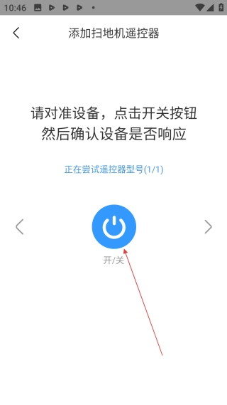 4、进入添加遥控器页,点击【开/关】按钮,即可控制对应设备。