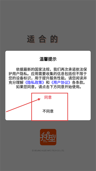 进入应用后,请先仔细阅读《隐私政策》和《用户协议》的各项条款,确认无误后点击【同意】按钮,完成初始权限的确认流程,即可顺利进入应用主界面。