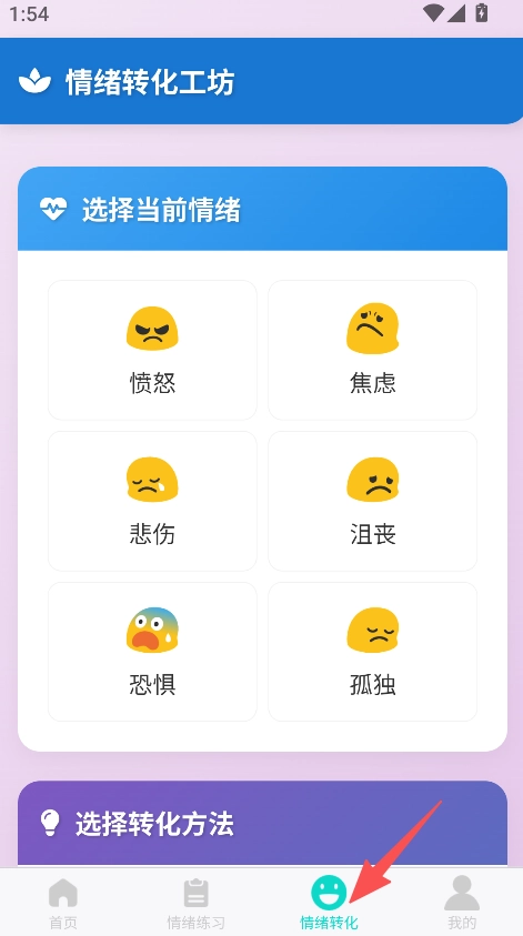 2、在页面选择当前情绪,再选择对应的转化方法。
