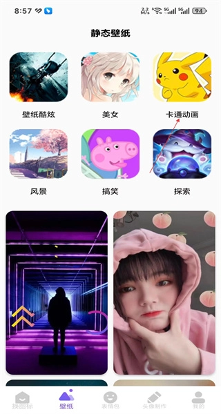 2、打开静态壁纸页面后,浏览各类分类壁纸,选择卡通动画标签即可切换至相应的壁纸列表。