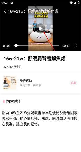 3、在课程目录列表,选择16w-21w舒缓肩背缓解焦虑课程,点击进入该课程的播放界面。