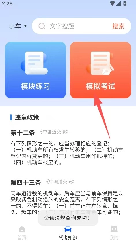 1、聚焦驾考理论,涵盖科目一、科目四模拟考试与交通法规查询,驾考理论学习需求全面覆盖,学员备考方向明确。
