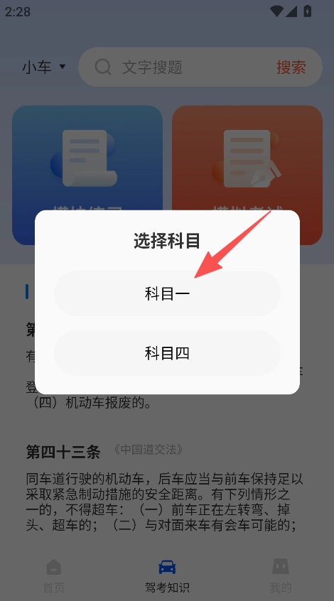 2、,选择科目一。