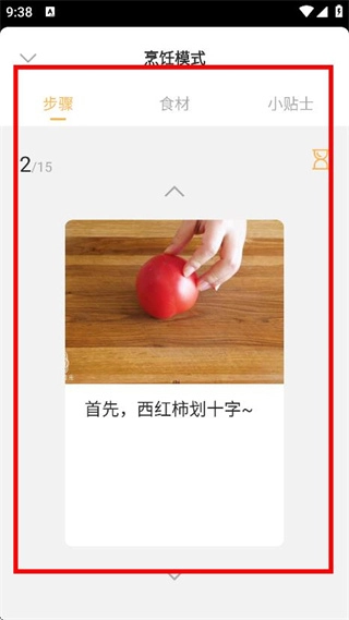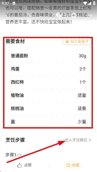 3、确认所需食材后,点击进入烹饪模式,即可跳转至烹饪步骤页面。