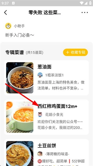 2、在新手菜谱页面,挑选想要查看的菜谱,进入该菜谱的详情页面。