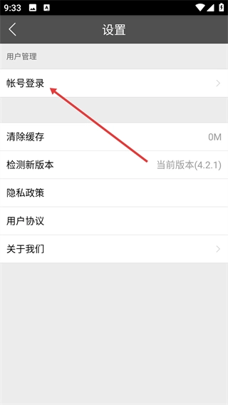 2、进入【设置】页面后,点击【帐号登录】选项,即可进入与账号相关的登录操作界面。