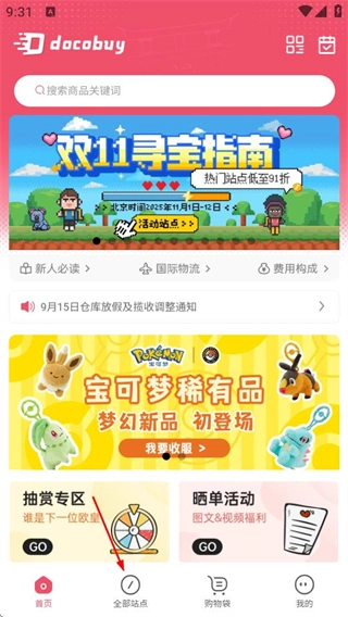 1、在Docobuy首页,点击底部全部站点选项,进入全部站点页面。