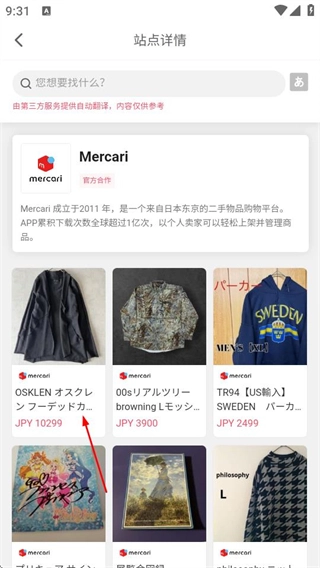 3、在站点详情页面,选择感兴趣的商品,进入商品详情页面。