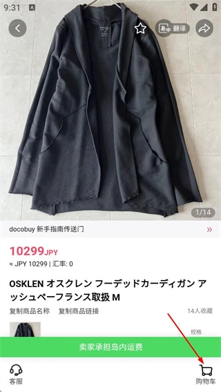 4、在商品详情页面,点击购物车按钮,可将商品加入购物车。