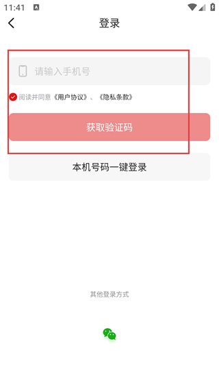 3、进入登录页面后,先在【请输入手机号】栏填写号码,接着勾选同意【用户协议】和【隐私条款】,之后点击获取验证码按钮。