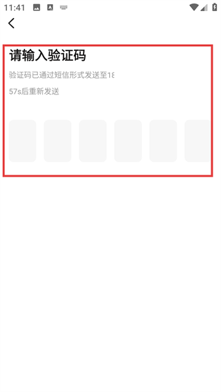 4、进入验证码输入页面,填写发送到对应手机号的验证码,注意倒计时,完成后就能完成登录。