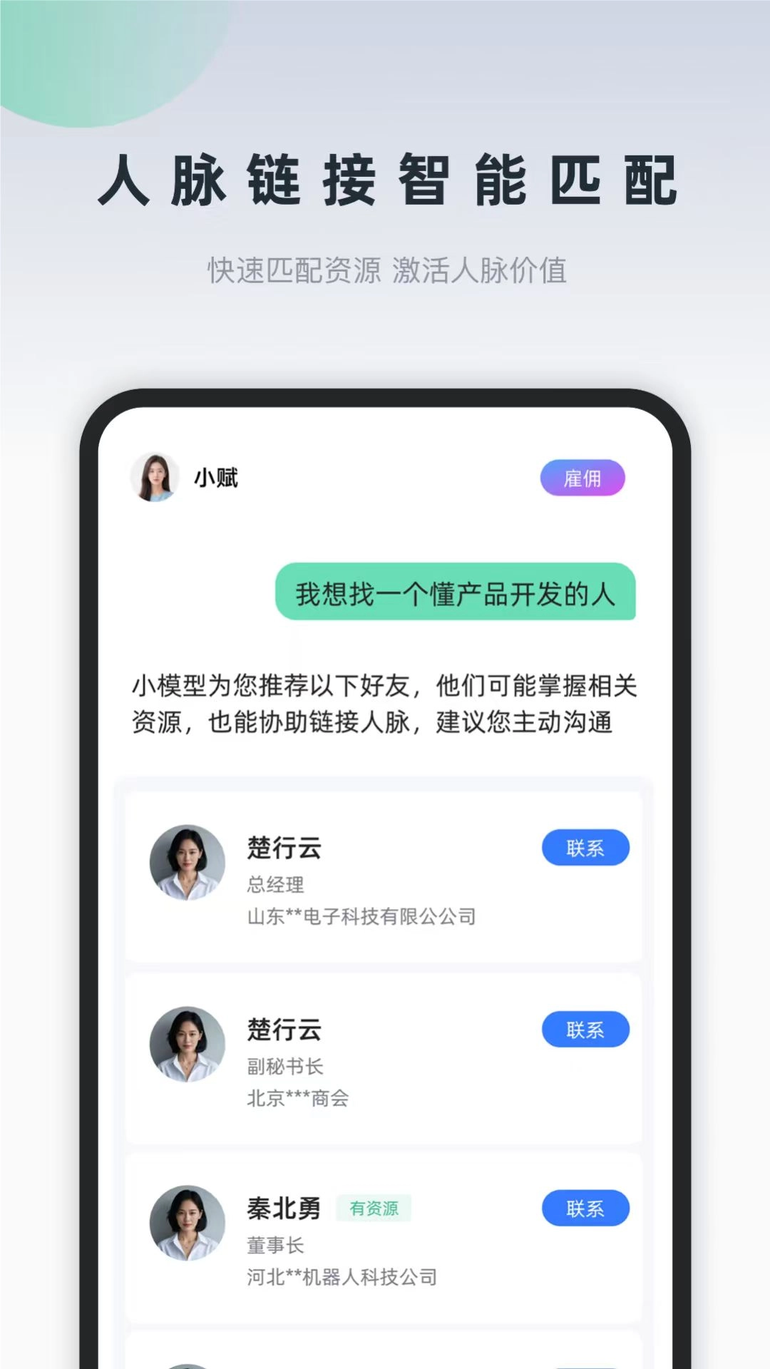 覆盖个人名片展示、业务推广、合作对接全流程