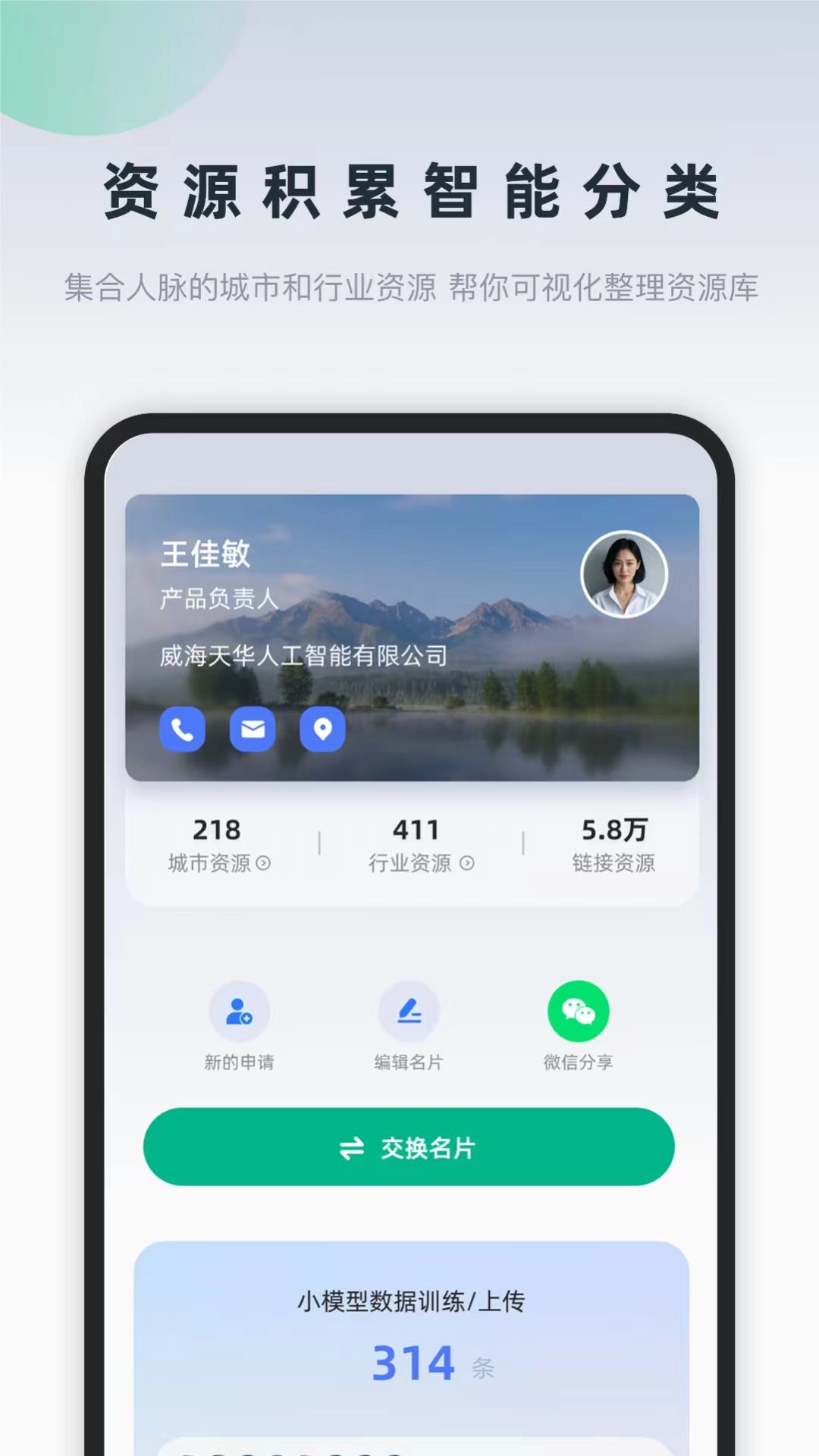 支持通讯录导入、扫码、微信分享等方式快速传递名片