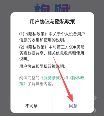 1、打开询赋点击同意