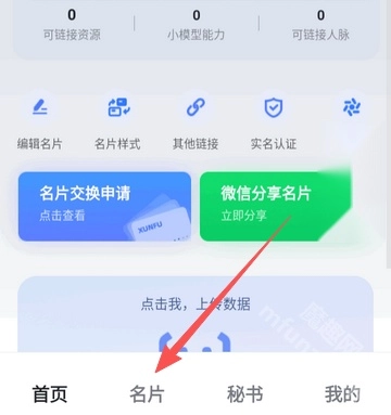3、在首页点击名片