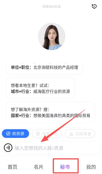 5、点击秘书可开始对话