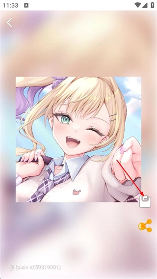 3、进入图片详情页面后,点击保存图标,即可将图片保存至本地。