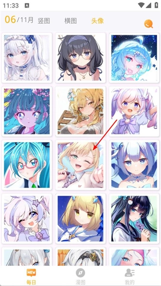 1、在每日漫图的首页,找到并点击头像选项,即可进入头像选择页面。
