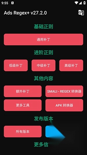 Ads Regex+手机版除了主要的拦截广告功能之外,还包含了绕过开发者模式检测、去除IP检测补丁、修复安装包来源检测等多种功能,后续还会增加更多功能等你来探索!