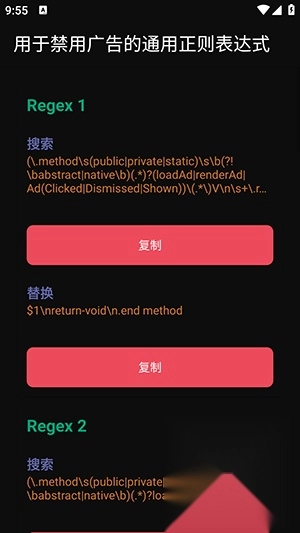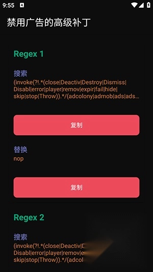 -提供现成广告规则补丁库,支持一键复制正则规则至 MT Manager。