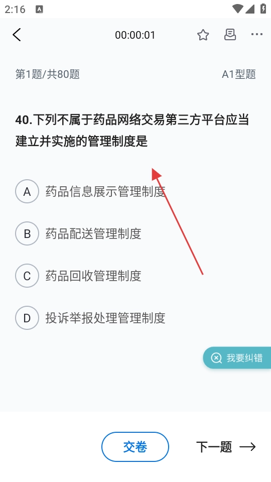 4、进入答题界面后,可开始作答题目,答题完成后可交卷或继续下一题。