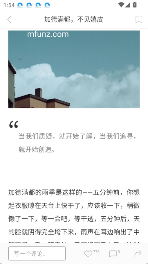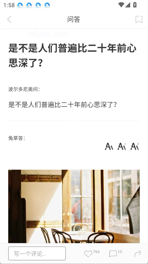 1.打开后,在首页上下滑动可查看广场上的文章和话题,每日会精选一张图画、一篇文章、一个问题和一个推荐内容。