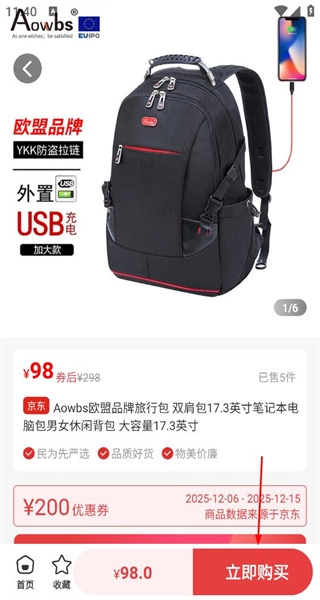 4、进入商品详情页面,查看价格、优惠等相关信息,在确认满足自身需求后,点击立即购买按钮以完成下单流程。